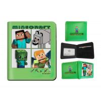 Dětská peněženka Minecraft World potěší všechny malé fanoušky populární počítačové hry. Přední stranu zdobí čtyři ikonické postavy z Minecraftu – Steve, Alex, zombie a vlk – na výrazném zeleném podkladu s nápisem a ikonami nástrojů. Tento hravý design v sobě spojuje dobrodružství a kreativitu světa Minecraft a promění každodenní používání peněženk..