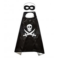 Dětský karnevalový převlek Pirát 2v1 je ideální volbou pro malé dobrodruhy, kteří sní o tom, že se stanou obávanými mořskými vlky. Sada zahrnuje černý plášť s klasickým pirártským symbolem lebky a zkřížených mečů a černou masku na oči pro autentický pirártský vzhled. Plášť je vyroben z lehkého a hladkého saténového materiálu, příjemného na no..