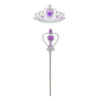 Locika z pohádky Na vlásku – sada doplňků pro malé princezny, která promění každou holčičku v opravdovou pohádkovou hrdinku. Elegantní korunka a ladící žezlo jsou zdobeny fialovými kamínky ve tvaru srdce, které dodávají celému vzhledu jemný královský nádech. Korunka je lehká a pohodlná na nošení, vyrobená z plastového materiálu s jemnými detaily..