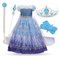 Dětský karnevalový kostým Elsa ve třpytivém designu. Šaty kostýmu jsou zdobeny třpytkami, nabíranými rukávy, zdobenou sukní a příslušenstvím, které zaručí půvab každé malé královny. Na sukni je umístěná vlečka, kterou je možné odepnout. Nechte svou malou princeznu zažít magii s kouzelným dětským karnevalovým kostýmem Elsy z filmu Ledové králov..