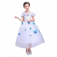 Tento kouzelný čistě bílý dětský kostým s nádhernými modrými motýlky promění každou malou slečnu v neodolatelnou princeznu.Šaty jsou navrženy v jemném bílém tónu, doplněné o modré detaily, které připomínají pohádkovou říši divů. Sukně je bohatě zdobena modrými motýlky, které dodávají šatům lehkost a pohádkový vzhled. Motýlci jsou připevnění k šatům..
