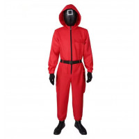 Ponořte se do světa napětí a strategie s kostýmem "dozorce". Tento kostým je inspirován ikonickou postavou dozorců, kteří v seriálu dohlížejí na smrtící hru plnou zvratů a nečekaných situací. Jeho výrazný červený overal s kapucí a černá maska s geometrickým symbolem okamžitě upoutá pozornost a dodá vám tajemný vzhled, který vzbudí respekt i zvědavo..