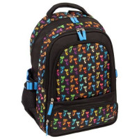 Školní dětský batoh s motivem Kočky. Funkční pohodlný batoh obsahuje jednu velkou kapsu a tři přední kapsy na zip. Dále obsahuje otvory pro sluchátka a jedna z předních kapes má organizér s přihrádkami a kroužek na klíče. Na bocích dvě síťované kapsy na láhev s pitím s dostatečnou ochranou v podobě stahovacích popruhů. Díky vyztuženým zá..